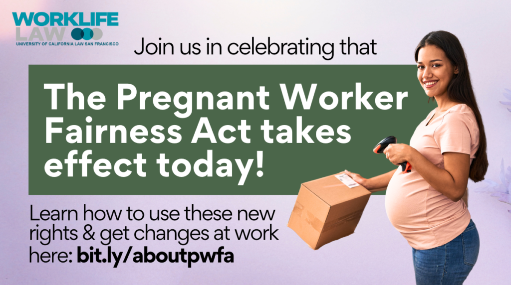The Center for WorkLife Law celebrates today’s enactment of the historic Pregnant Workers Fairness Act (PWFA).